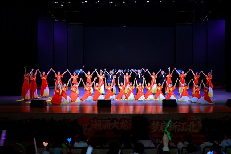 第一篇章“龙湾潮生”中,我校学子带来的舞蹈《远古的呼唤》舞姿婀娜、张力十足,勾勒出龙湾大地的历史底蕴;学子们还为奇瑞捷途汽车的歌曲《云山》伴舞,悠扬歌声搭配灵动舞姿,绘就山水诗意与政校企同心的和谐画面。第二篇章“帆聚江北”里,我校操舞《风华正茂》以多元舞姿尽显青年学子朝气活力;舞蹈队为鸠江公安分局的朗诵《少年壮志不言愁》伴舞,柔美舞蹈配合铿锵朗诵,刚柔并济间更衬公安队伍热血担当。第三篇章“汇流成海”中,我校舞蹈《在希望的田野上》以灵动舞步描绘江北新区发展美好蓝图;我校教师与弋矶山医院江北院区代表联袂演唱《新的天地》,荡气回肠的歌声传递出对新区未来的无限憧憬。最后,我校师生与江北新区各单位携手放歌《我们都是追梦人》,用赤诚的旋律凝聚奋进力量,用合唱诠释团结担当。